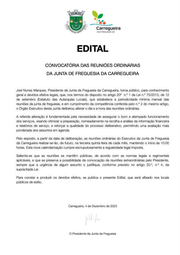 © 2026 Junta de Freguesia de Carregueira. Todos os direitos reservados | Termos e Condições | * Chamada para a rede/móvel fixa nacional